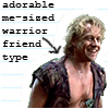 Description: Iolaus laughing. Text: "Adorable me-sized warrior friend type"