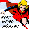Description: Supergirl determinedly flying forward. Text: "Here we go again!"