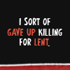 Description: Text: "I sort of gave up killing for Lent."