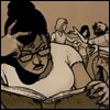 Description: Doctor Rao studying while everyone else parties.