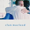Description: Connor and Duncan hugging. Text: "Clan MacLeod"